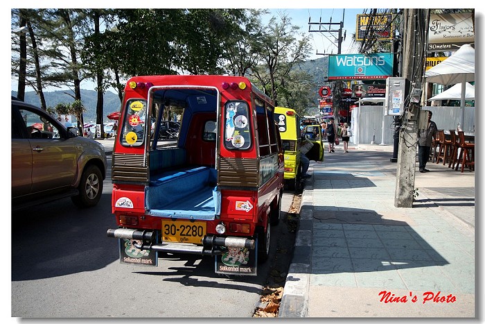 ★海攤主街上排滿漆得五顏六色的Tuk Tuk車,以喊價方式載客到任何地方,有點像是沒有門的計程車