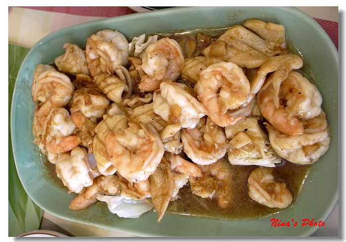 ★這道是泰式料理,以蒜頭加上不知名的醬料,造就出一盤美味的海鮮,不辣也不太鹹,卻很下飯呢!