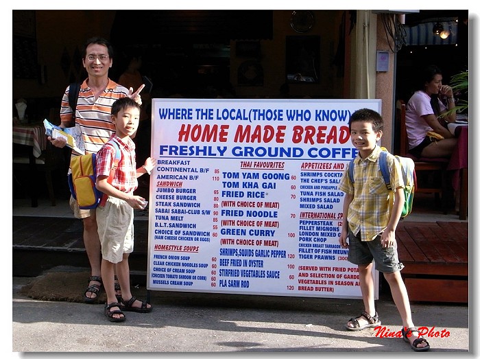 由於我們午餐沒有吃什麼,抵達巴東海灘也已午后兩、三點,看到沿街的海產及撲鼻香氣,真想趕快找一家餐廳坐下來大啖海鮮。幸好理智猶存,決定找尋Mook雜誌裡推薦的巷弄美食-Sabai Sabai。
