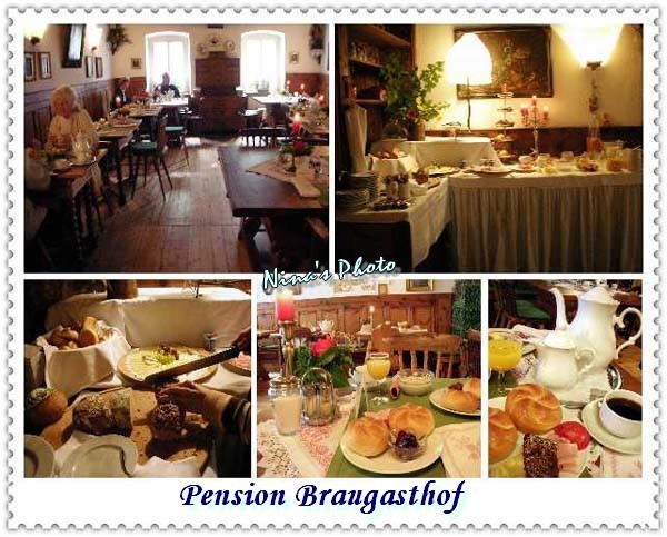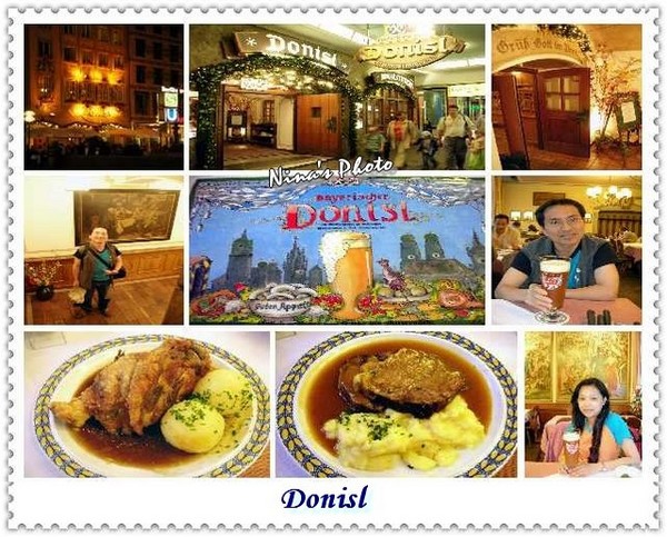 我們選擇坐在露天座位區,環顧四周,啤酒屋一家接一家,天氣放晴了,店家紛紛將戶外的大傘打起招攬客人,這是我們在德國的最後一天,還是白啤&Radler一杯,外加慕尼黑著名的白香腸嘍!這水煮的白香腸還是第一次品嚐,之前吃過用煎,味道很棒,不知水煮的如何......等了好一會才上桌,侍者端上一盤八字結麵包及一個大碗公,探頭一瞧~大瓷湯碗裡飄著兩根白香腸,之前在歐電站有看到前輩們分享如何食用這種白香腸,但實在是未見人們這麼吸著吃,侍者也沒有說明,我向『超大翻譯機』說明了"正確的吃法"後,他睜著大眼睛說著:不好吧~~唉!唉!於是兩個蠢觀光客撈起白香腸,開始切片沾醬吃起來,連腸衣都不剩,我只能說咬勁不錯,不知名的沾醬很好吃~~八字結麵包還是熱熱的吃好啊!