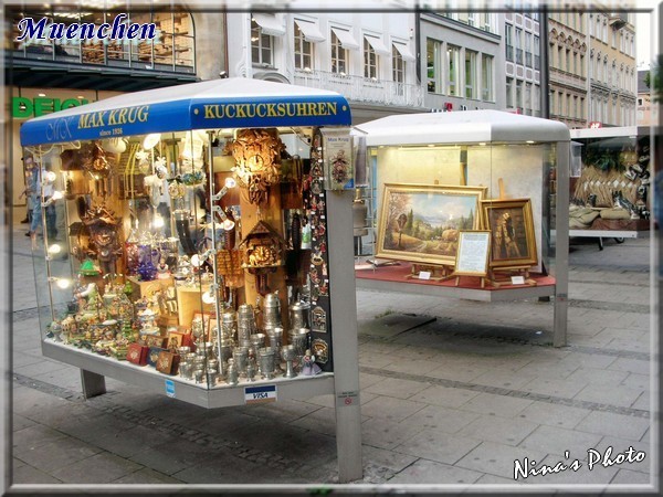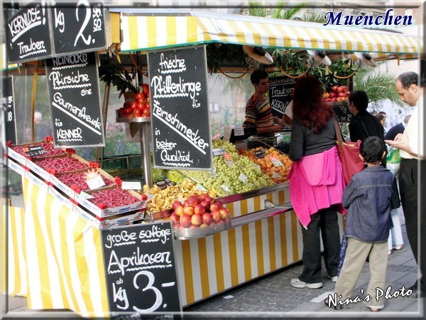 相較於內部的安靜,外頭熱鬧極了!二話不說,往維多利亞市集前進,一路上又看到許多俏皮可愛的獅子。維多利亞市集從1807年開始,是慕尼黑最大也最古老的露天市場,各式的蔬果、乳酪、葡萄酒等等,食材應有盡有,還有可愛的手工飾品店及露天啤酒餐座,可以從早餐吃到下午茶,走累了就來一杯啤酒,再不然吃個冰淇淋也不錯哦!我們在一家紀念品店裡買到了質感不錯的狗狗擺飾,幾可亂真的可愛模樣,讓人愛不釋手。來到這裡記得準備好現鈔,不然看到想買的東西又沒現金在身上時,可是會扼腕地...不收信用卡哦!