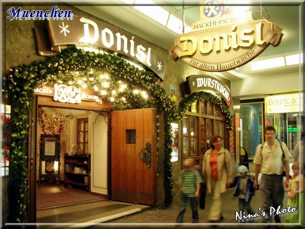 下午兩點多,我們又回到了瑪麗恩廣場,離開慕尼黑之前,當然要到皇家啤酒屋(Holfbräuhaus)去朝聖一下嘍!這裡的小廣場也聚集了好多觀光客,我想因為這個啤酒屋的名氣太甚的原因吧!這間啤酒屋建於1589年,號稱是世上最大的啤酒屋,可以同時容納3500人,啤酒除了人手一杯外,是一公升的超大杯哦!內部還有現場演奏的表演廳,巴伐利亞的民謠不絕於耳,不過室內人多吵雜,感覺有點擁擠,但快樂的氣氛不用贅述。
