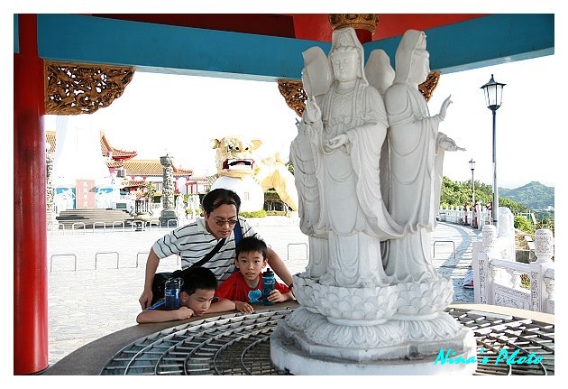午后三點的中正公園正是熾熱的時候,遊客三三兩兩,辛苦的工作人員還得頂著大太陽為觀音菩薩及廟宇做整修及油漆工作,我想可能是為了中元節提前做準備吧!