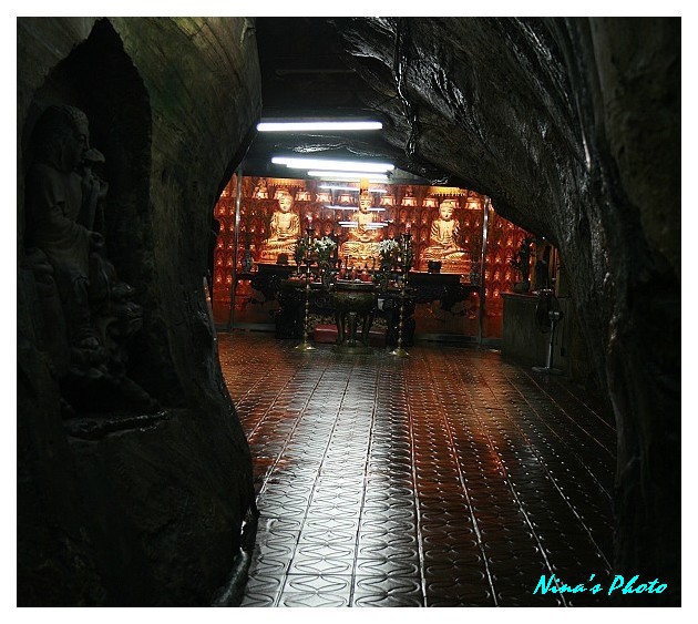 ★這深達80餘公尺的洞窟分為左、右兩洞,皆是自然天成,進入後的右洞裡,其壁上有基隆雕刻家李榮坤18歲時的作品:地藏菩薩、騎獅的普賢菩薩、騎象的文殊菩薩,雕得唯妙唯肖,距今已有三十多年。