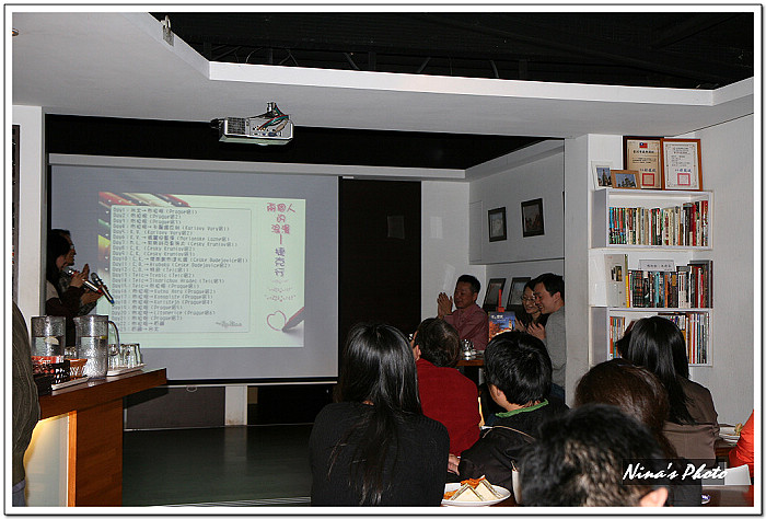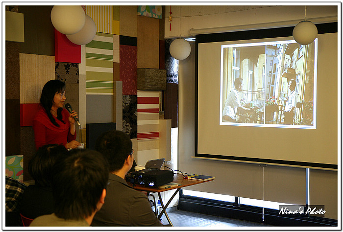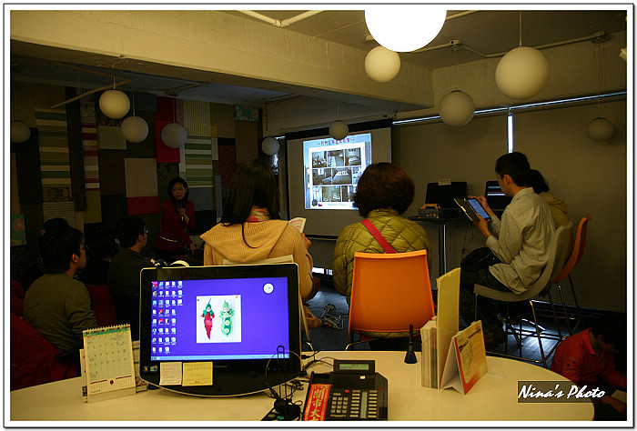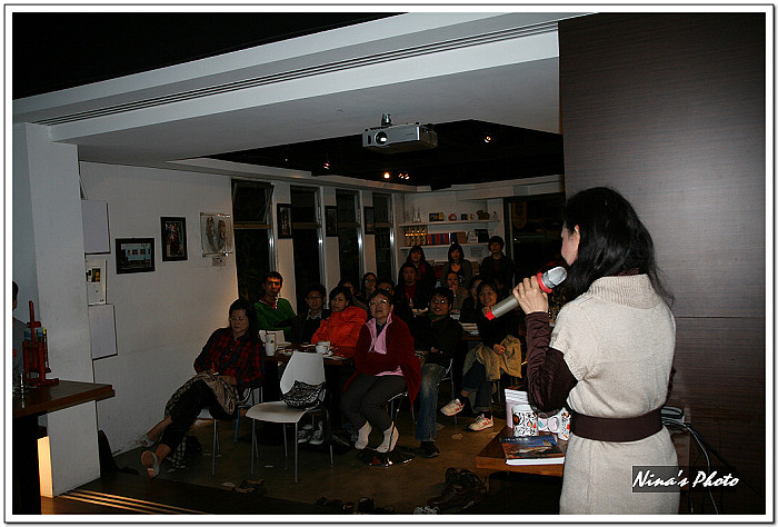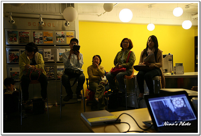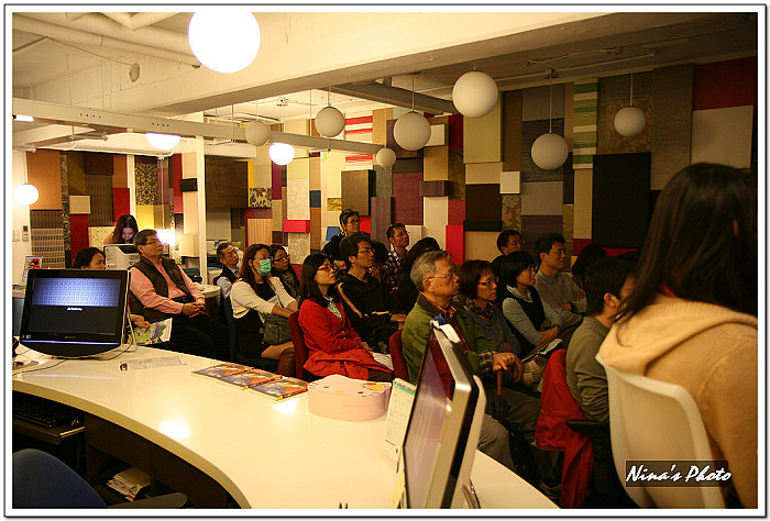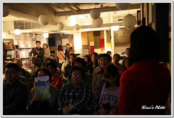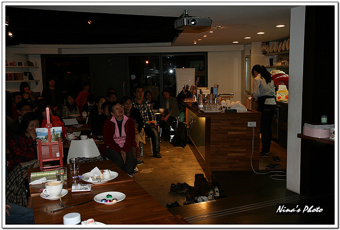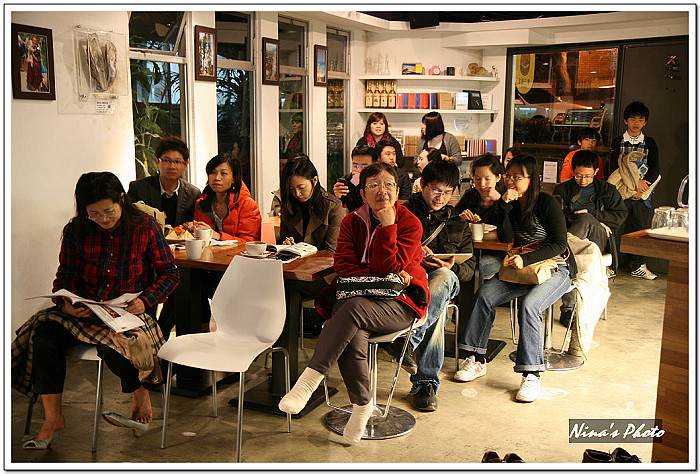 ★講座開始前,觀眾已陸續進場,由於咖啡館的燈光較昏暗,先拿出單眼試拍幾張。