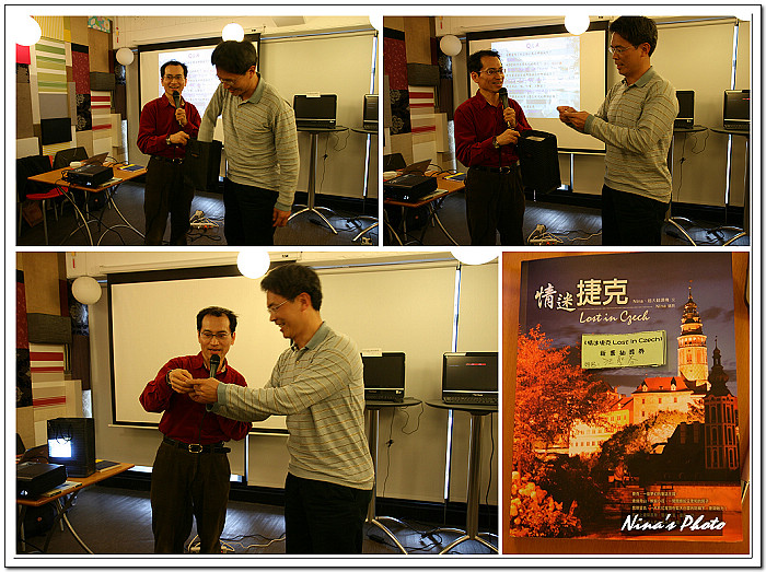 當天歐洲自助旅行充電站站長Phoenix及站友Panda Chan也出席這場分享會,他們都去過捷克,也是自助旅行的高手,在這些高手面前真有說不出來的緊張。而隔天一早要出發前往西安旅行的Christie賢伉儷也聯袂出席,讓我們感動在心頭啊!而遠在新竹仍埋首於工作中的麻吉同鞋梢來一封簡訊,表達無法抽身北上的歉意及加油打氣,讓我們倍感溫暖~同鞋啊~你們的心意我收到了,我們也在等你們的新書發表會哦!(記得要在第一時間先偷偷告知我喲